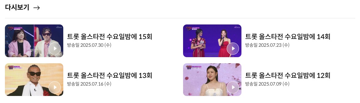 2. '트롯 올스타전 수요일밤에' 레전드 무대 다시보기 방법